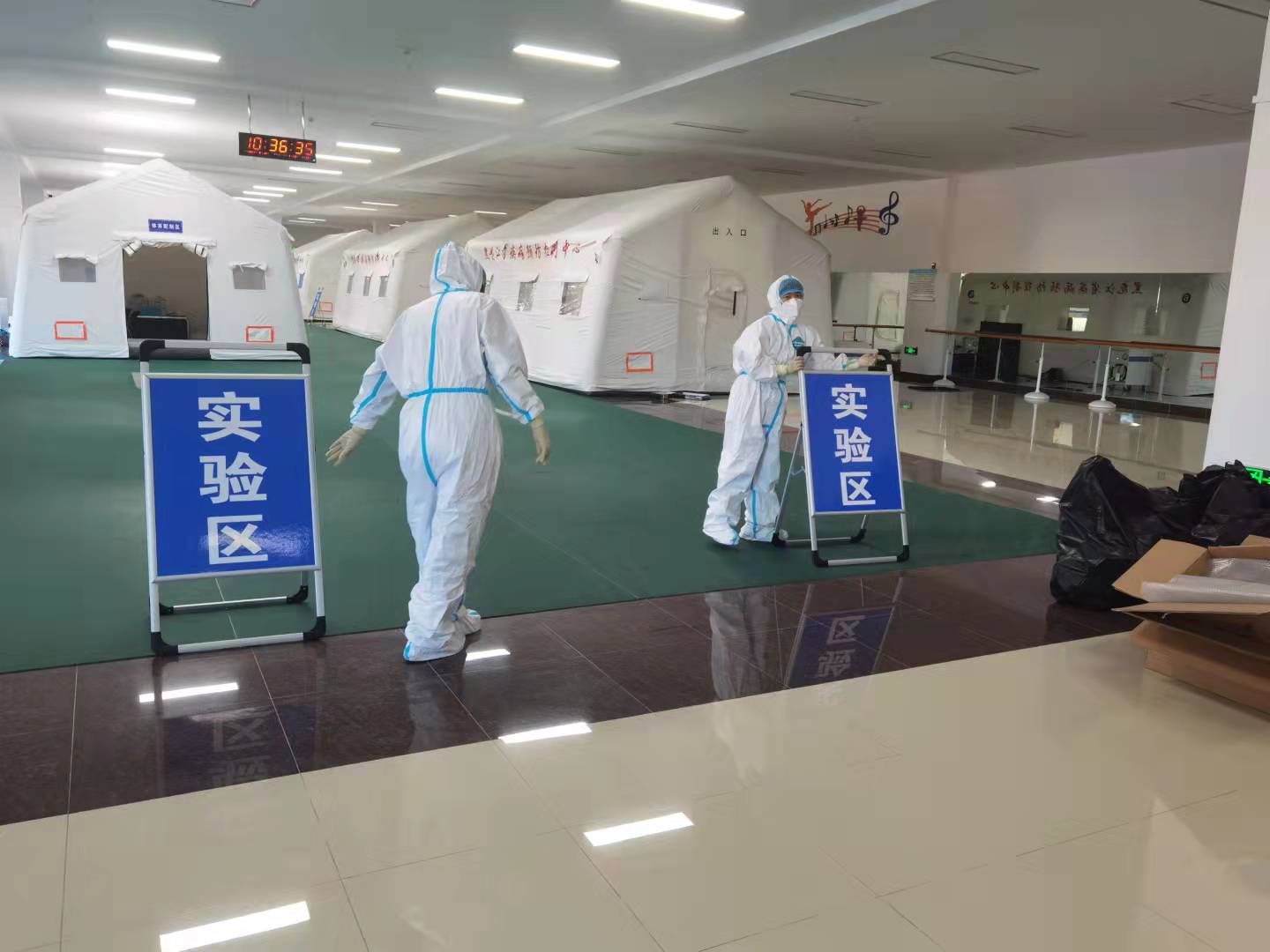 在黑河市體育館,省疾控中心核酸檢測方艙實驗室28日上午已經(jīng)完成組建。省疾控中心病毒所所長許軍介紹,該實驗室六個負壓帳篷日可檢測核酸樣本15000份。4支核酸檢測隊伍日可檢測樣本3.5萬份,加上黑河市核酸檢測實驗室,檢測能力可完全滿足當(dāng)天采樣當(dāng)天完成檢測的需要。