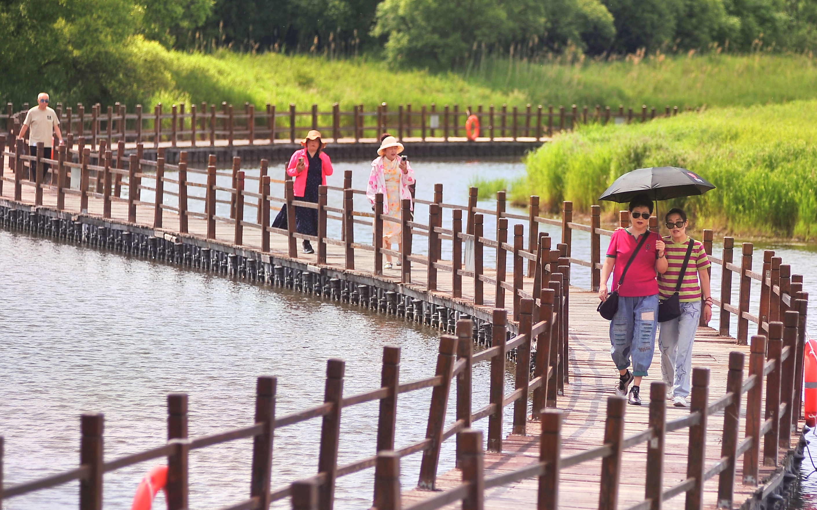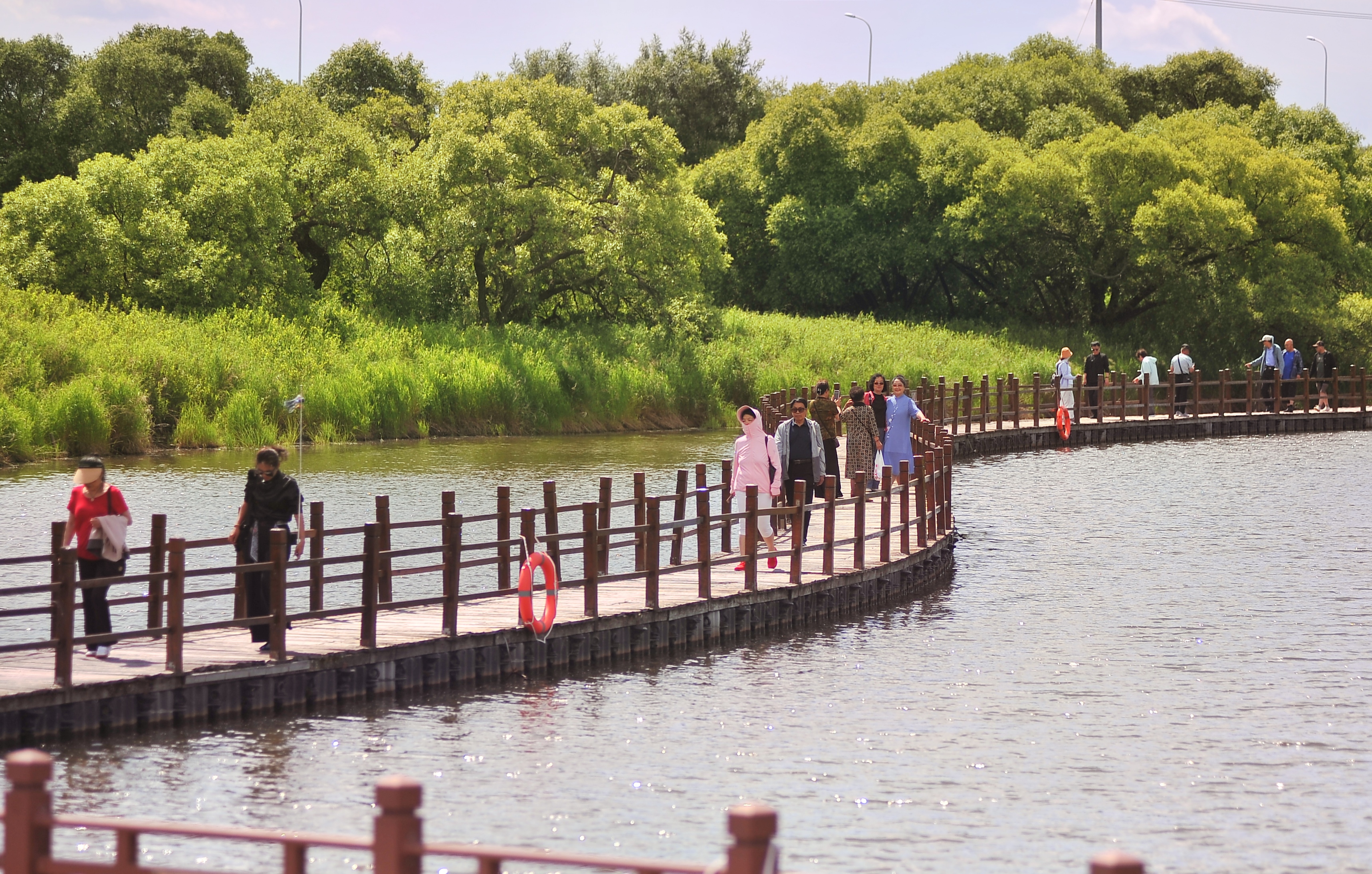 人們走上蜿蜒曲折的棧道,進(jìn)入濕地深處,觀賞野生鳥類,拍攝美麗的自然風(fēng)光,記錄下一個(gè)個(gè)精彩瞬間。