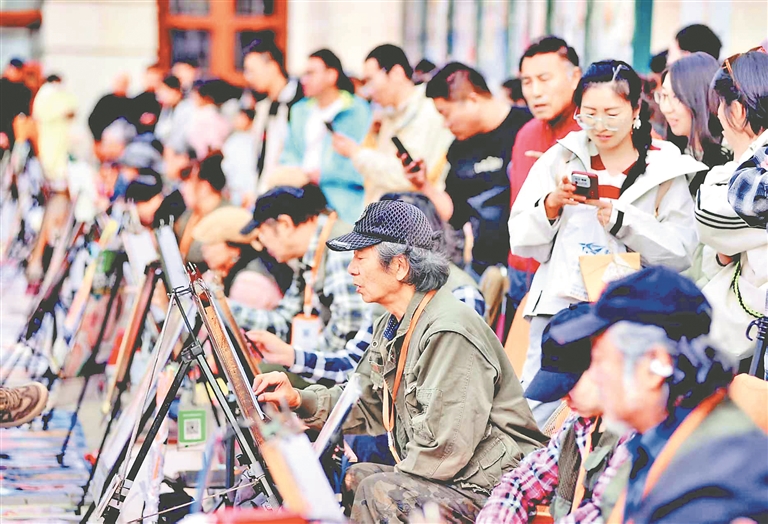 老街畫師的生意十分紅火。本報(bào)記者 蘇強(qiáng)攝