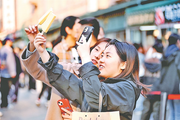 品嘗馬迭爾冰棍之前先拍個(gè)照。