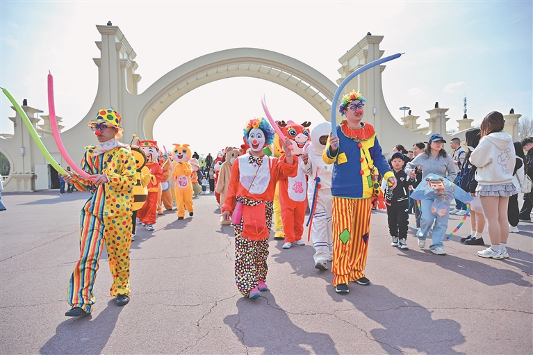 風(fēng)景區(qū)內(nèi)的街頭互動(dòng)表演。本報(bào)記者 張春雷攝