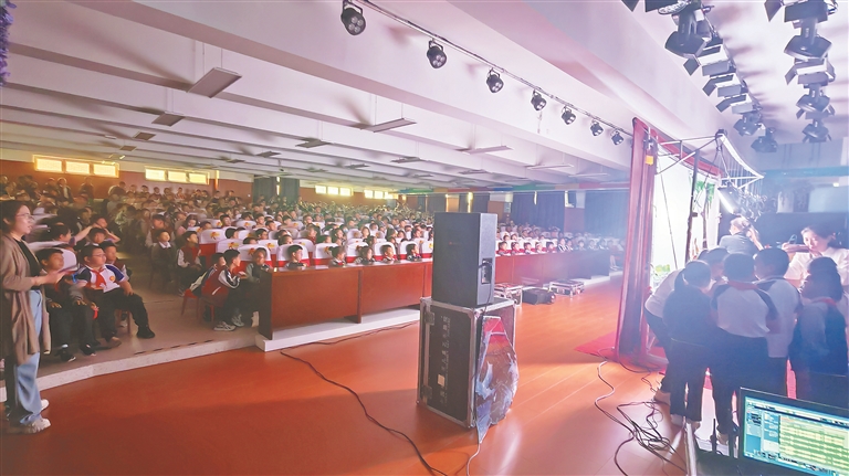 幕布如雪,燈如月。當龍江皮影戲《星火之光——羅盛教》的舞臺燈光在暗色中漸次亮起,瞬間將硝煙彌漫的朝鮮戰(zhàn)場推到觀眾眼前……光影交錯間,羅盛教為救崔瑩而無力上岸沉入水下,阿瑪尼送他的那朵紅花,緩緩浮出水面升入空中,隨后,無數(shù)紅花漸次上升,那些在朝鮮戰(zhàn)場上犧牲的英雄們“化作”片片紅花,訴說著對祖國的無限思念,臺下的觀眾潸然淚下……這是日前哈爾濱市保國第四小學校(南三校區(qū))學生們觀演的一幕,亦是獲國家藝術基金資助項目劇目的系列演出的縮影。