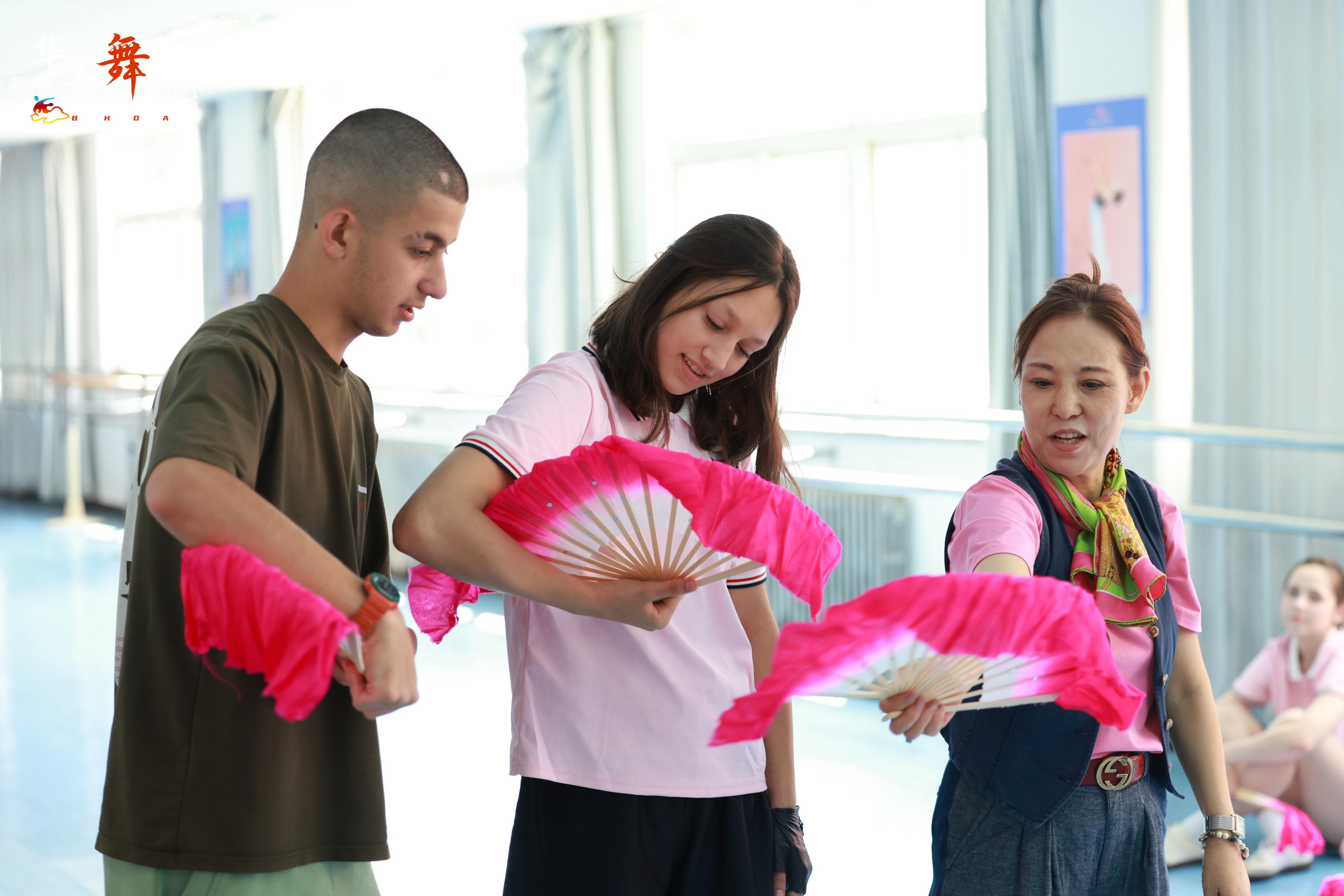 俄羅斯學(xué)生在牡丹江學(xué)習(xí)扇子舞