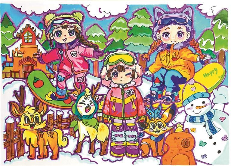 小畫家們以畫筆抒懷,巧妙融匯傳統(tǒng)水墨與水粉、油畫、版畫、剪紙、拼貼等多元藝術(shù)形式,通過豐富的色彩和充滿想象力的構(gòu)圖,以純真視角詮釋冰雪文化的獨(dú)特美學(xué)內(nèi)涵。這些作品不僅拓展了冰雪主題繪畫的藝術(shù)表現(xiàn)空間,更彰顯出冰雪文化作為精神基因已深深融入龍江少年的成長歷程,充分展現(xiàn)了新時(shí)代少年兒童昂揚(yáng)向上的精神風(fēng)貌,生動展現(xiàn)了他們對家鄉(xiāng)熱土、冰雪文化與藝術(shù)創(chuàng)作的那份質(zhì)樸而執(zhí)著的熱愛。