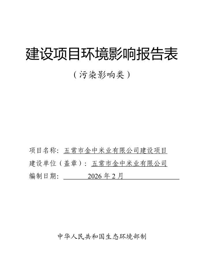 五常市金中米業(yè)有限公司建設項目環(huán)境影響報告表